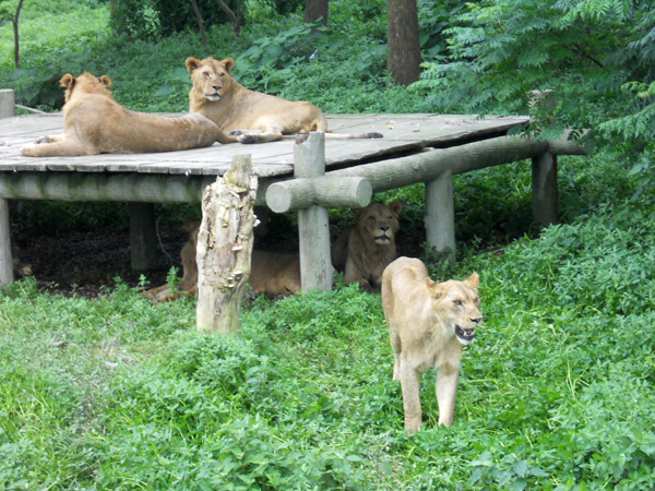 对观览车还算有点反应的狮群